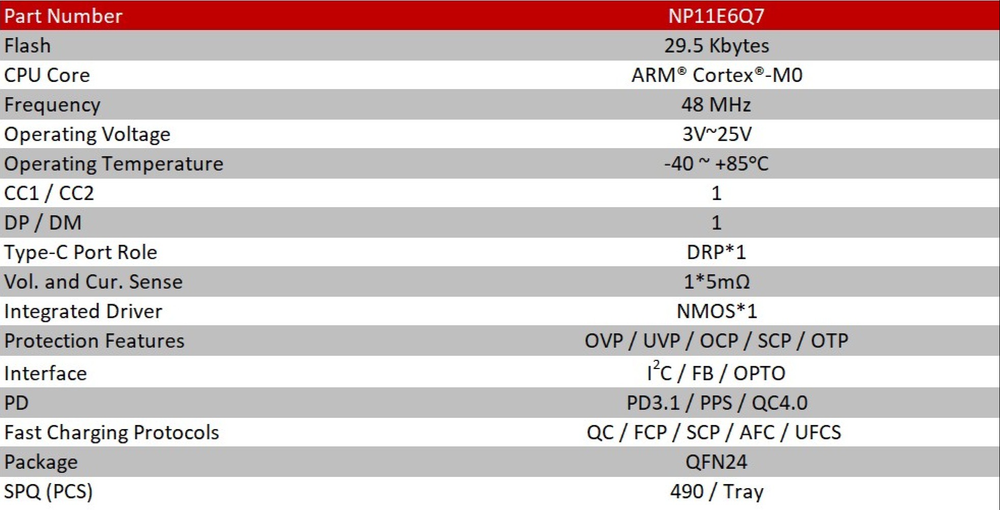 The NP11 is a highly integrated and cost-effective fast-charging protocol IC supporting USB Type-C PD or single-port Type-A applications, featuring a built-in high-performance processor and programmable Flash memory. It integrates CC/CV control loops, bidirectional discharge circuitry, and multiple system protection functions. With its highly integrated design requiring minimal external components, it provides a complete, low-cost solution for applications such as power adapters and car chargers.